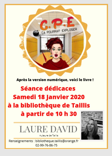Samedi 18 janvier 2020 à partir de 10h30 à la bibliothèque de Taillis: ma première séance de dédicaces.